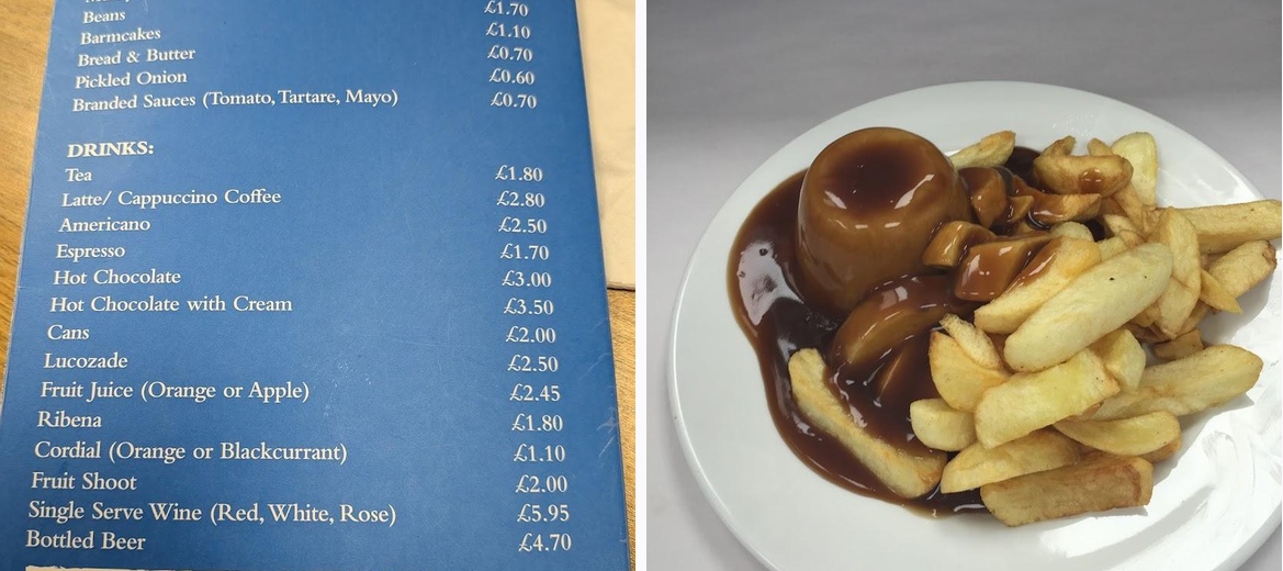 Kay’s Fish & Chips specializes in traditional British fish and chips. You can enjoy various dishes, including Cod, Haddock, and Plaice, along with side orders like mushy peas and gravy. Kids can also find a dedicated menu.