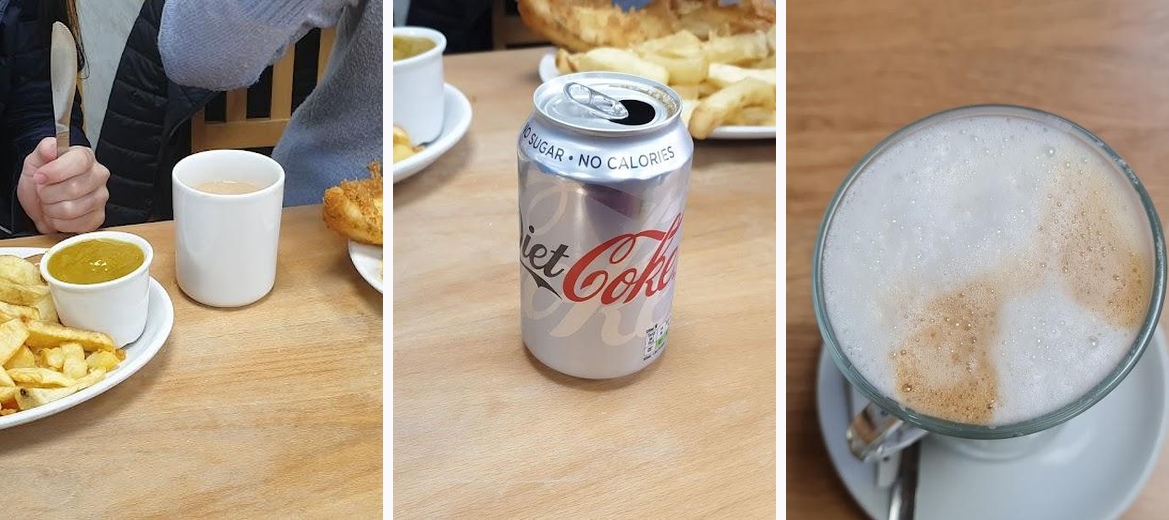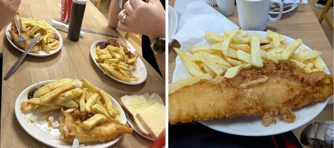 Very busy for eating in and takeaway but was greeted straight away by a server. My children and I looked at the menu and made our choice and the server apologised several times about how busy it was and said she wouldn't be long, but we didn't mind the wait as we'd enjoyed some lovely time on the beach first. We placed our order and drinks were promptly served. The food is always great quality here the batter is perfectly crispy and the chips light, fluffy and nicely browned. The staff are all very nice and the atmosphere is always lively.